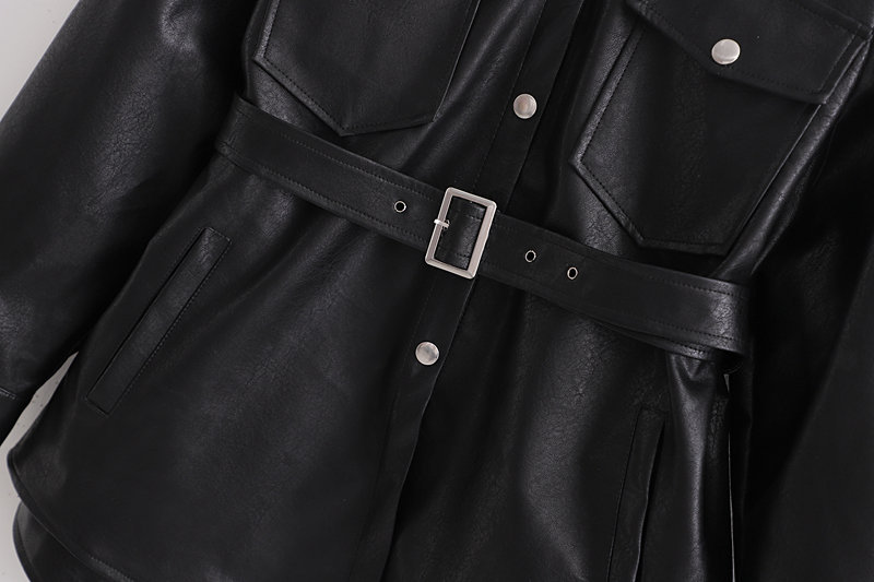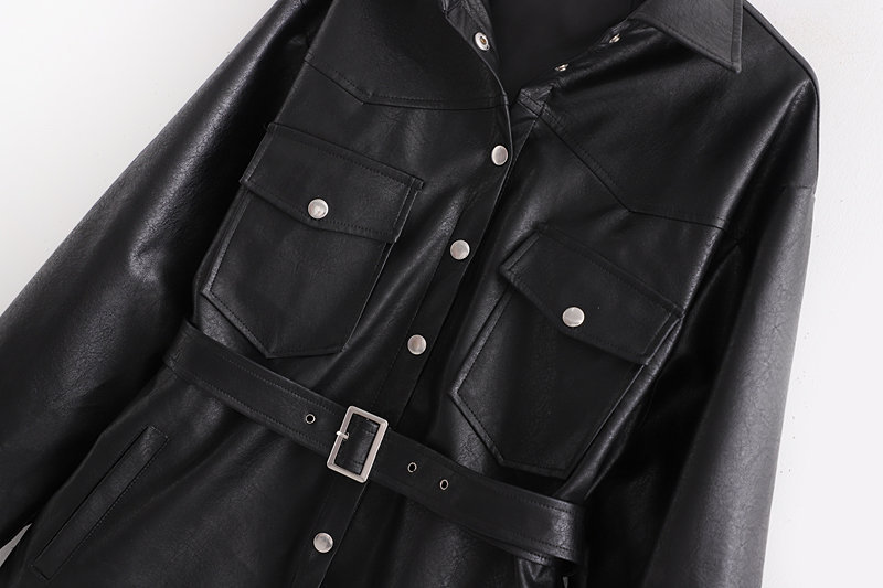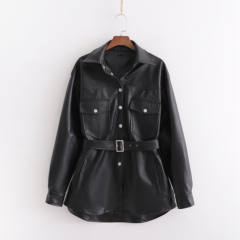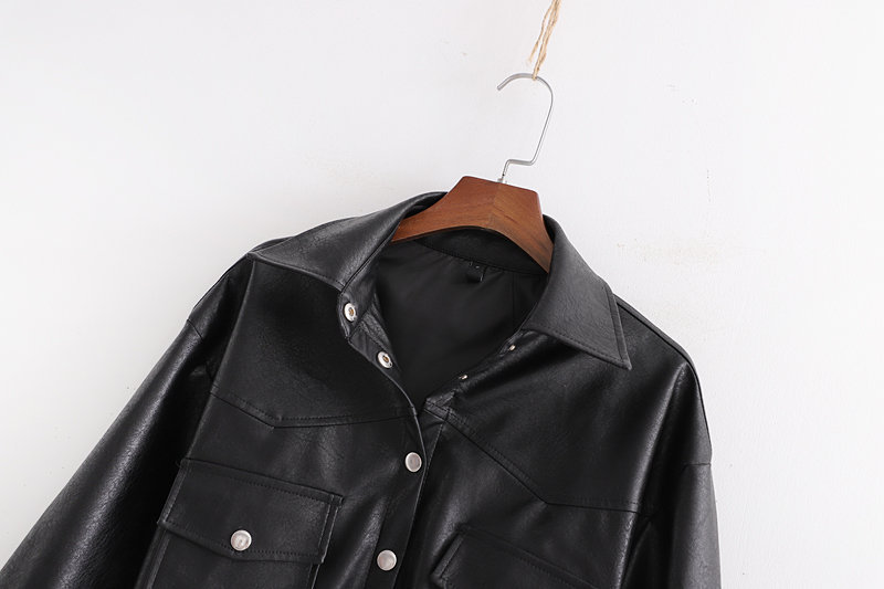 Women’s Fashion Long-Sleeve Leather Jacket Blazer